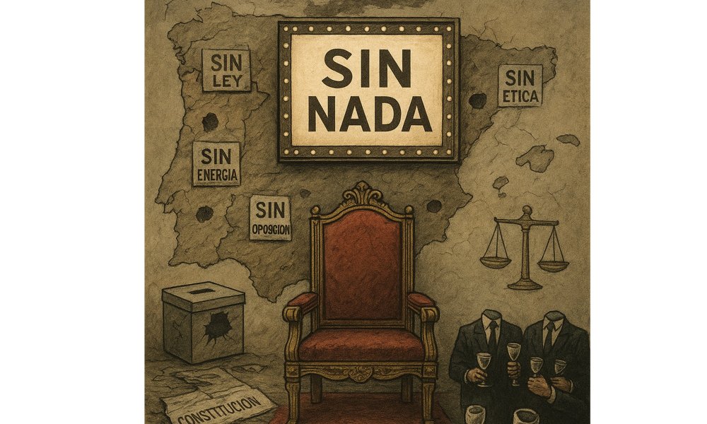 Los apagones son sin responsabilidad del Ejecutivo y de los fichajes a dedo, las Danas sin ayuda (“si quieren ayuda que la pidan”), el caos ferroviario sin Renfe. España, nuestra España, sin viviendas, sin echar a los okupas (invenciones de la derecha), un país sin combatir el paro estructural (de camareros pero sin albañiles y profesionales cualificados), así como sin mitigar los contratos basuras y la precariedad.