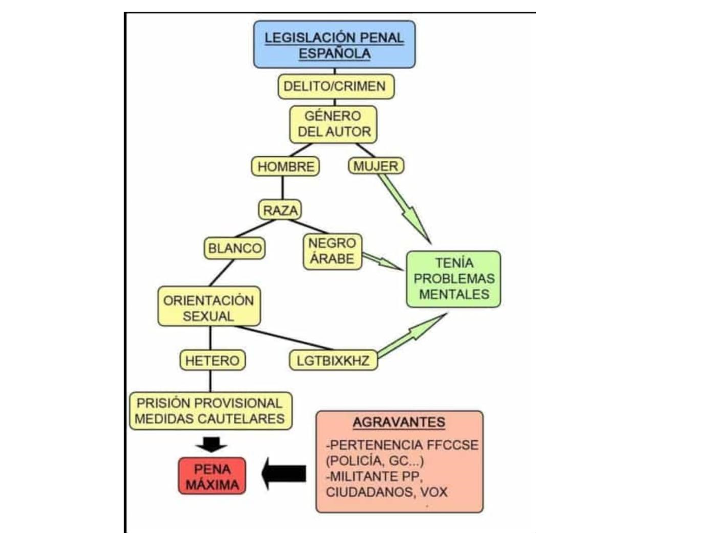 Esta genialidad circula por internet y dudo que algún lector, sea de la ideología que sea y vote a quien vote, no esté de acuerdo con ella. Si eres varón, blanco (en nuestro caso, español) y heterosexual eres carne de presidio.