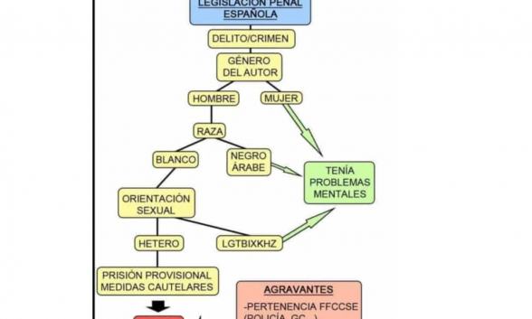 Sólo añadir algo que creo, honestamente, falta en el diagrama. Si además de varón heterosexual y sentirse español, eres cristiano y no ocultas tu fe… entonces eres carne de presidio, vía delitos de odio y, además, serás un paria toda la vida. Como muchos católicos moderaditos, que diría el historiador Javier Paredes. Eso sí, no se amilanen: ser cristiano se ha convertido en un deporte de alto riesgo en el que se nada contra corriente, ergo es formidable. Ser católico consecuente se ha convertido en la gran aventura del siglo XXI.