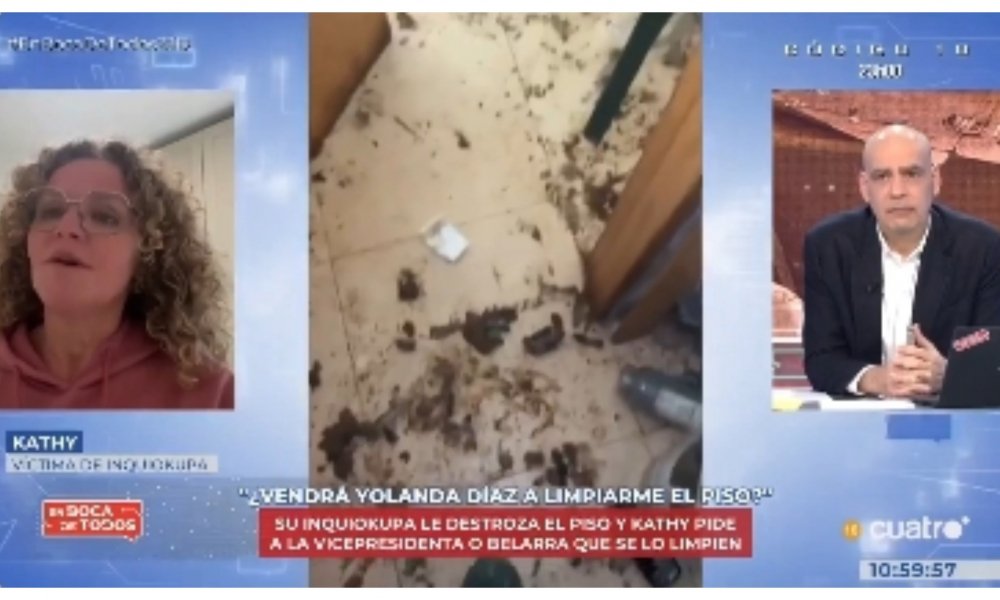 Más de un año después, Kathy recupera su piso, en unas condiciones deplorables, por lo que lanza un mensaje contra Yolanda Díaz y Belarra: "que vayan a limpiarlo". A lo mejor con Yolandísima tiene suerte... por aquello de que le gustan las tareas del hogar, como la plancha.