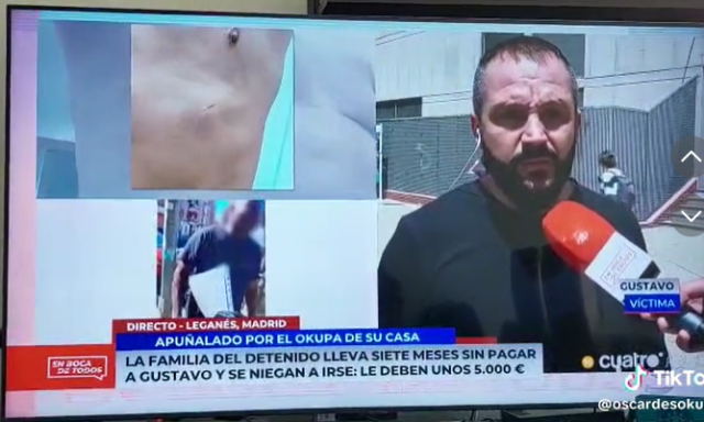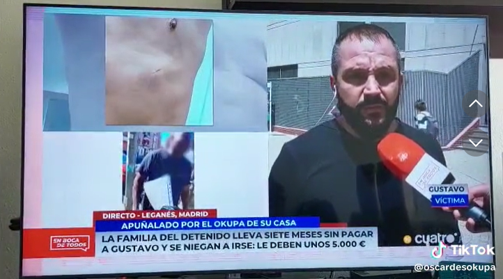 Gustavo, como legítimo propietario del piso, fue a hablar con su inquiokupa para solucionar una avería del inmueble que está provocando daños a un vecino. La intención del propietario era proponerle a su okupa que saliera de la vivienda, él le perdonaba la deuda de 7 meses, pero necesitaba solucionar la avería. La respuesta del okupa fue una brutal agresión con un cuchillo.