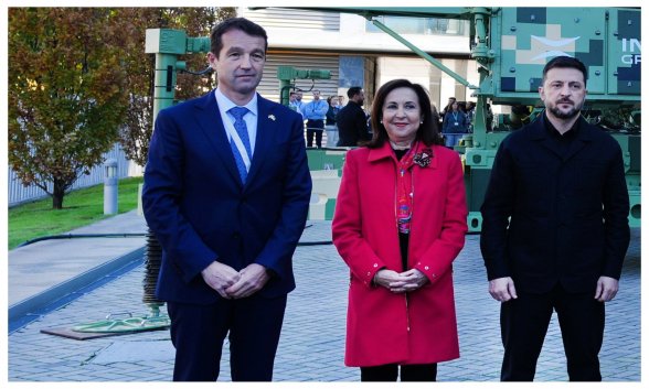 Pero vamos con la visita de Zelenski a Indra, ahora convertido en punta de lanza del sector armamentístico español. Zelenski descubrió el martes, durante su visita a la compañía, junto a una Margarita Robles ante la cámaras de sonrisa eléctrica hacia el presidente de Indra, Ángel Escribano, dos semanas después de quejarse por los retrasos en las entregas de material militar... que Indra necesita productos, además de diseño.